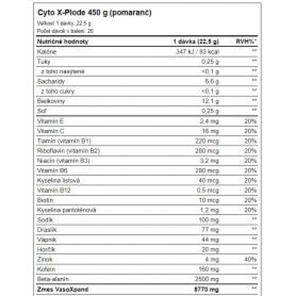 Specification Aone Nutrition - Cyto X-Plode 450 g aone